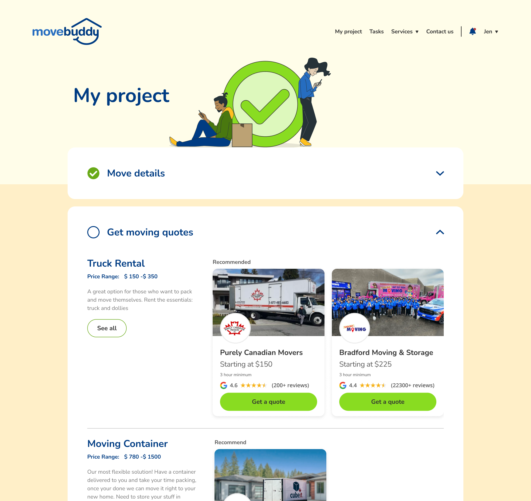 Storage Vault, a self and portable storage company noticed many of their customers come from needing storage because of a move or renovation. To capitalize on this user group StorageVault decided to create MoveBuddy to help users find a mover.